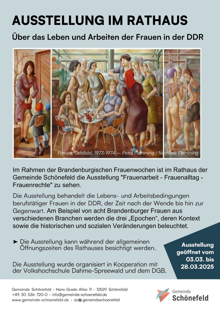 Die Ausstellung beleuchtet das Leben und die Arbeitsbedingungen von acht Brandenburger Zeitzeuginnen vor und nach der Wende bis zur Gegenwart.